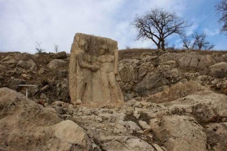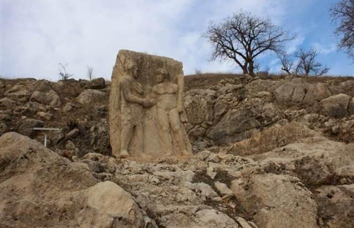 Arsemia Antik Kenti'ne ait en önemli kalıntılardan biri de Herkül'ün, kendisini tanrı katında gören I. Antiochus ile tokalaşmasının tasvir edildiği 10 ton ağırlığa sahip kabartma. Kabartma üzerinde I. Antiochus sivri uçlu tacıyla, Herkül ise sakalı ve elindeki sopasıyla resmedilmiş. Antiochus'un, yarı tanrı Herkül ile aynı boyda yapıldığı ve hatta kafasındaki taç ile kendisini ondan üstün kıldığı göze çarpan detaylar arasında. Herkül, bir fakir misali çırılçıplak tasvir edilirken, Antiochus ise gücün ve zenginliğin simgesi olan pelerinlerini kat kat giyilmiş şekilde tasvir edilmiş. Antiochus'un elinin tokalaşırken Herkül'ün elinin üzerinde duruyor olması da kral egosunun açık bir göstergesi niteliğinde. Arsemia Antik Kenti'nde bu eserlerden başka günümüze başka bir kalıntı ulaşamamış.